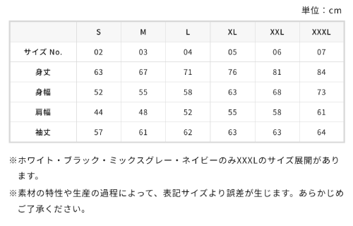 S, M, L, XL, XXL, XXXLカラー